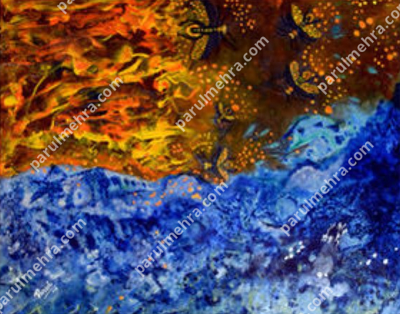 Thoughts inside our heads - buzzing & frisking around - have at last come alive from hibernation & yearn for action …this work depicts dragon flies, alive & frisking about between landscapes which are sunny & bright