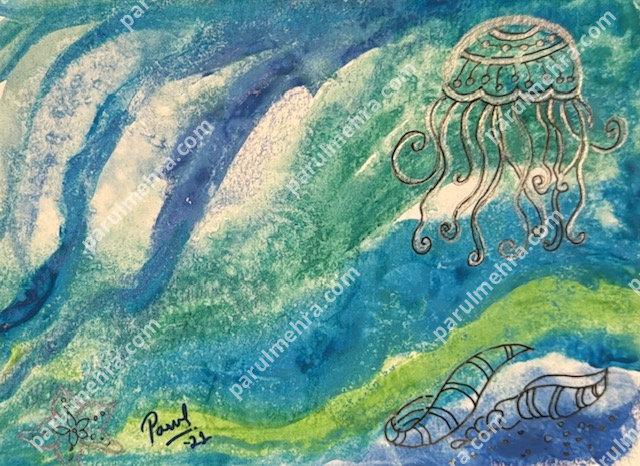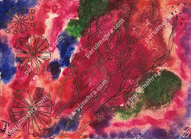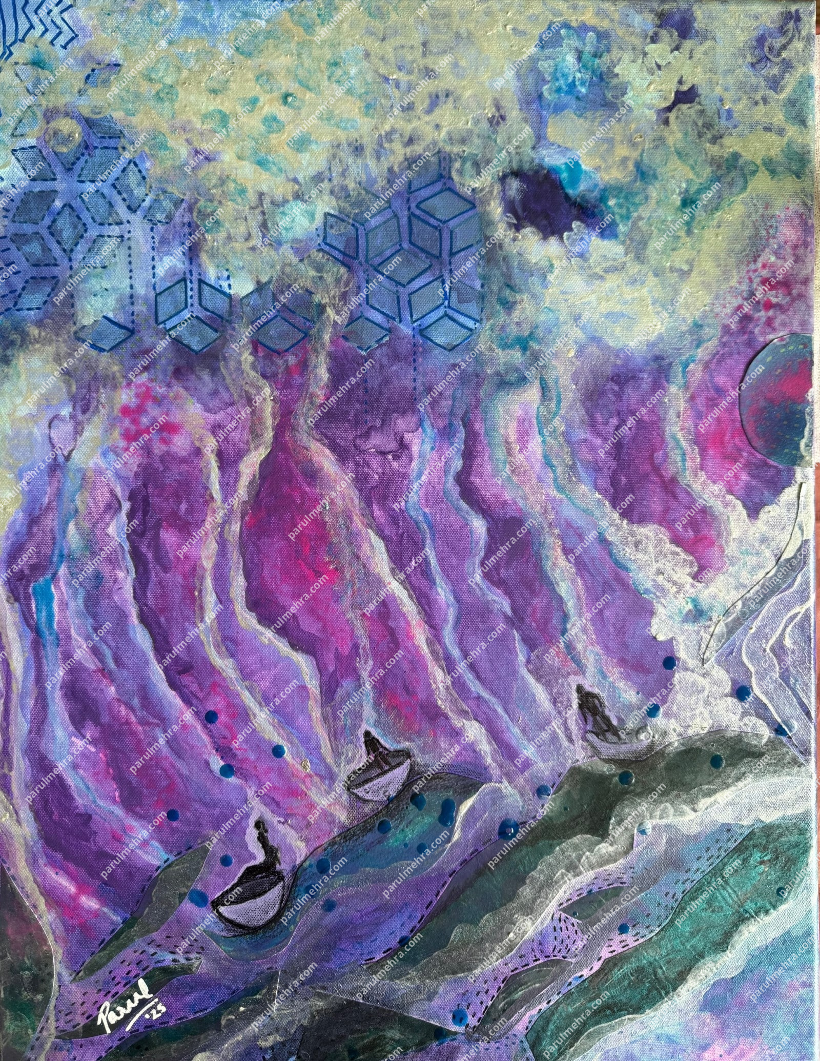 The depiction of the Mandala ( energy centre ) on the top most part signifies the importance of energy movements / flow of energy in heavenly realms. The lower half of the artwork shows how earthly bodies are influenced by such forces.